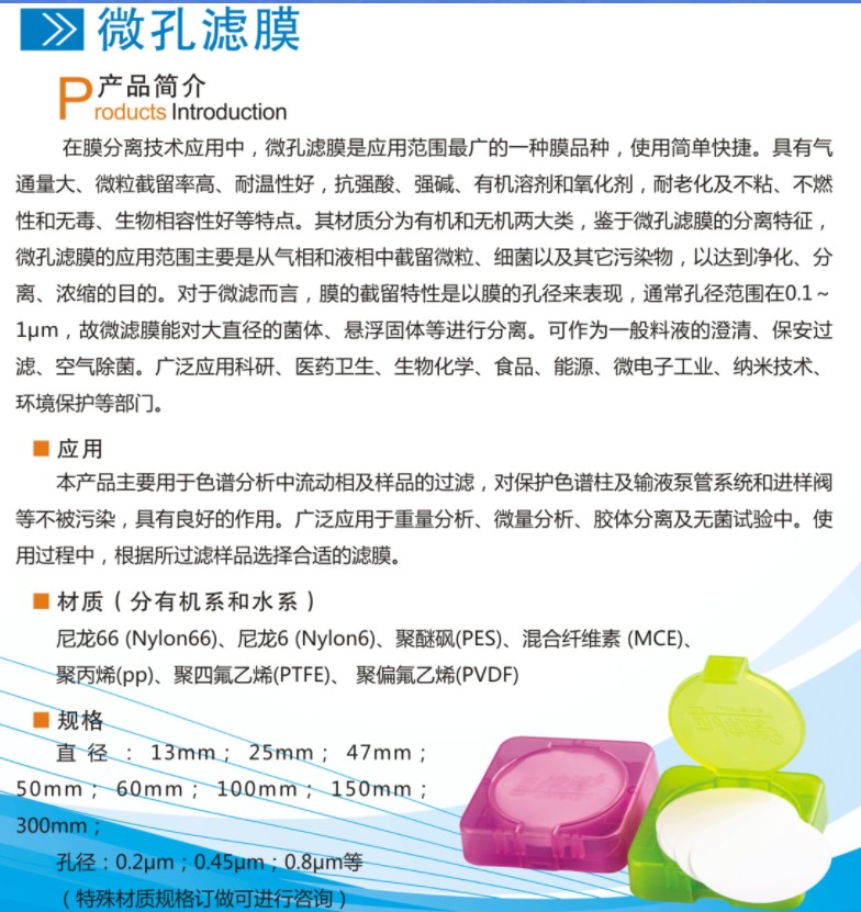 简介: 津腾 微孔滤膜